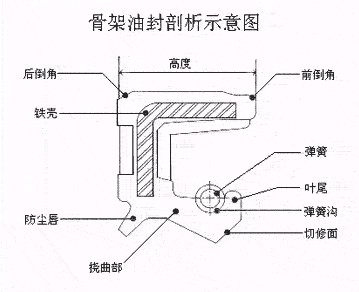 油封的代表形式是TC油封,這是一種橡膠完全包覆的帶自緊彈簧的雙唇油封,一般說的油封常指這種tc骨架油封,骨架油封示意圖 參見圖: